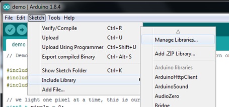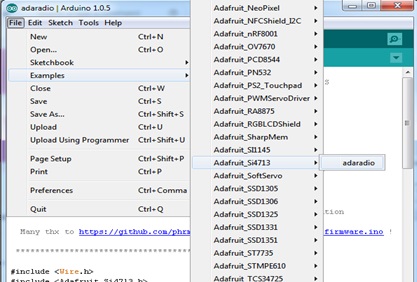 نسخه دمو از مسیر File->Examples->Adafruit_Si4713->Adaradio قابل دسترس میباشد.