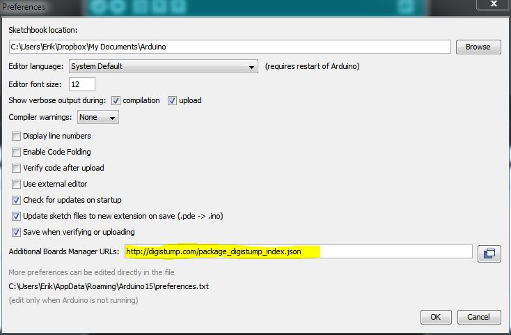 در کادر “Additional Boards Manager URLs” لینک زیر را وارد نمایید: